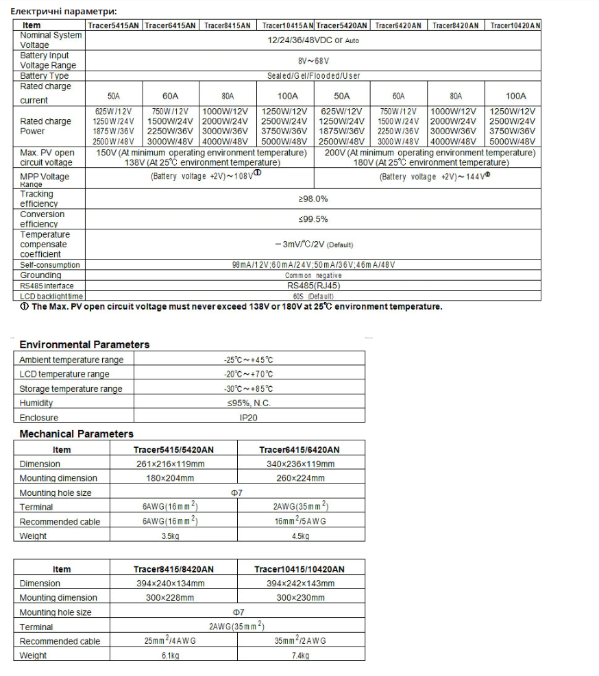 Також контролер автоматично обмежує зарядний струм і потужність, що дозволяє безпечно використовувати його з великими панелями та при високих температурах.