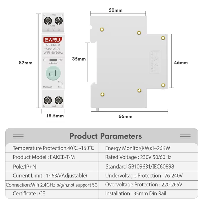 Цей пристрій чудово підходить для захисту електромережі, моніторингу енергоспоживання, а також забезпечує зручне дистанційне керування через мобільний додаток або голосові асистенти.
