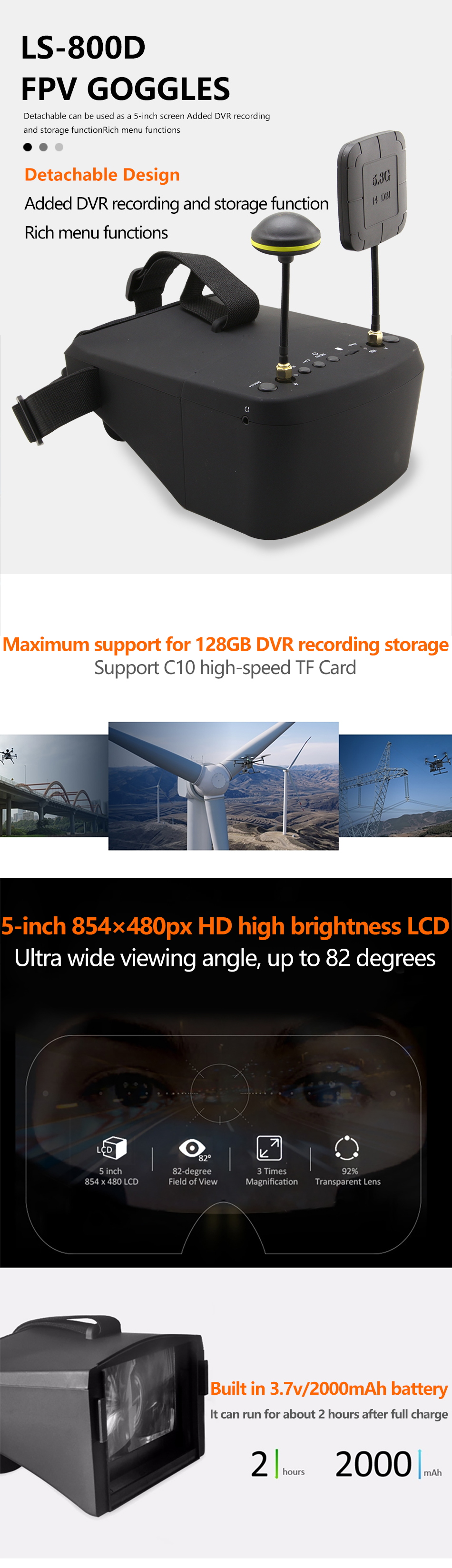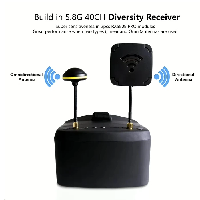 - Великий екран 5 дюймів, HD-дисплей 854 x 480, 82-градусний кут огляду для FPV-перегонів.