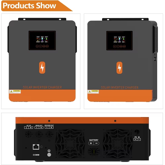 Це багатофункціональний інвертор/зарядний пристрій, що поєднує в собі функції інвертора, сонячного зарядного пристрою MPPT і зарядного пристрою для акумулятора, щоб забезпечити підтримку безперебійного живлення з портативним розміром. Його зручний РК-дисплей пропонує настроювані користувачем і легкодоступні сенсорні кнопки, такі як зарядний струм акумулятора, пріоритет змінного/сонячного зарядного пристрою та прийнятну вхідну напругу на основі різних додатків.