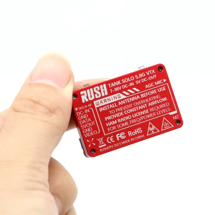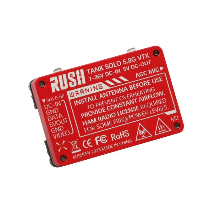 RUSH SOLO VTX — це високопродуктивний аналоговий відеопередавач із максимальною потужністю 1.6 Вт. Завдяки унікальній конструкції тепловідведення та двокольоровому CNC-корпусу, передавач поєднує компактність, ефективність і довговічність. Вбудований мікрофон із функцією автоматичного контролю рівня (AGC) забезпечує чітку передачу звуку.