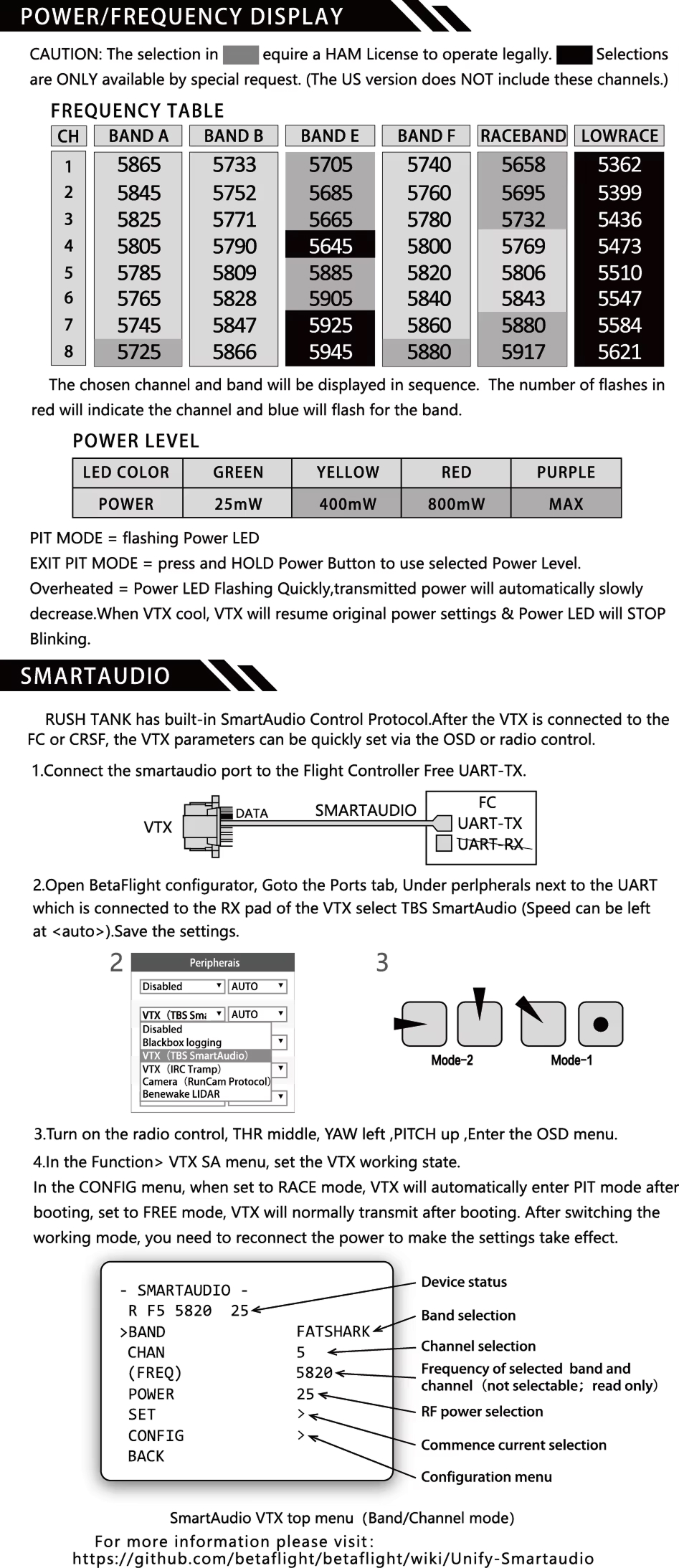 Зовнішнє керування: SmartAudio V2.1 (ліцензія TBS)