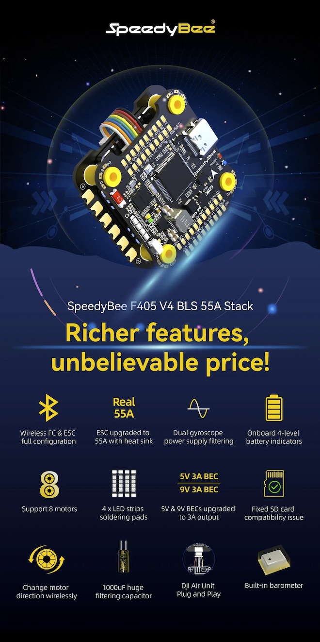Польотний стек speedybee f405 v4 з польотним контролером та регулятором обертів