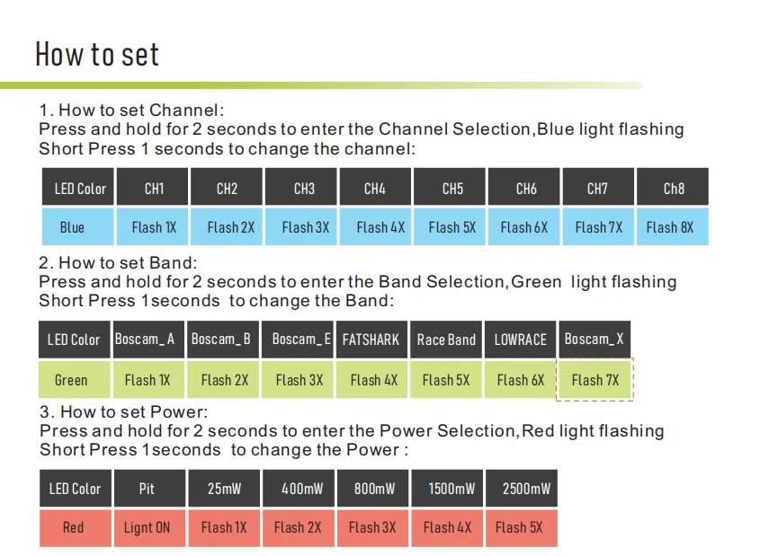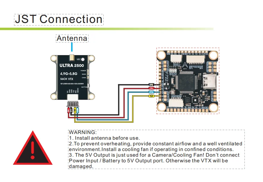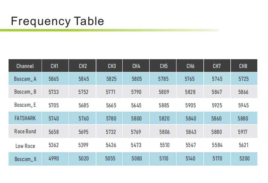 Примітка. Якщо ви хочете одночасно використовувати діапазони 4,9G і 5,8G, будь ласка, використовуйте антену та VRX, які можуть покривати частоту від 4,9Ghz до 5,8Ghz. Якщо антена та VRX не можуть охоплювати всі діапазони, вам може знадобитися використовувати іншу антену та приймач під час використання 4,9G та 5,8G.