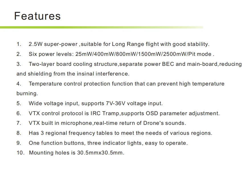 | Режими потужності | 0MW/25/400/800/1.5W/2.5W |